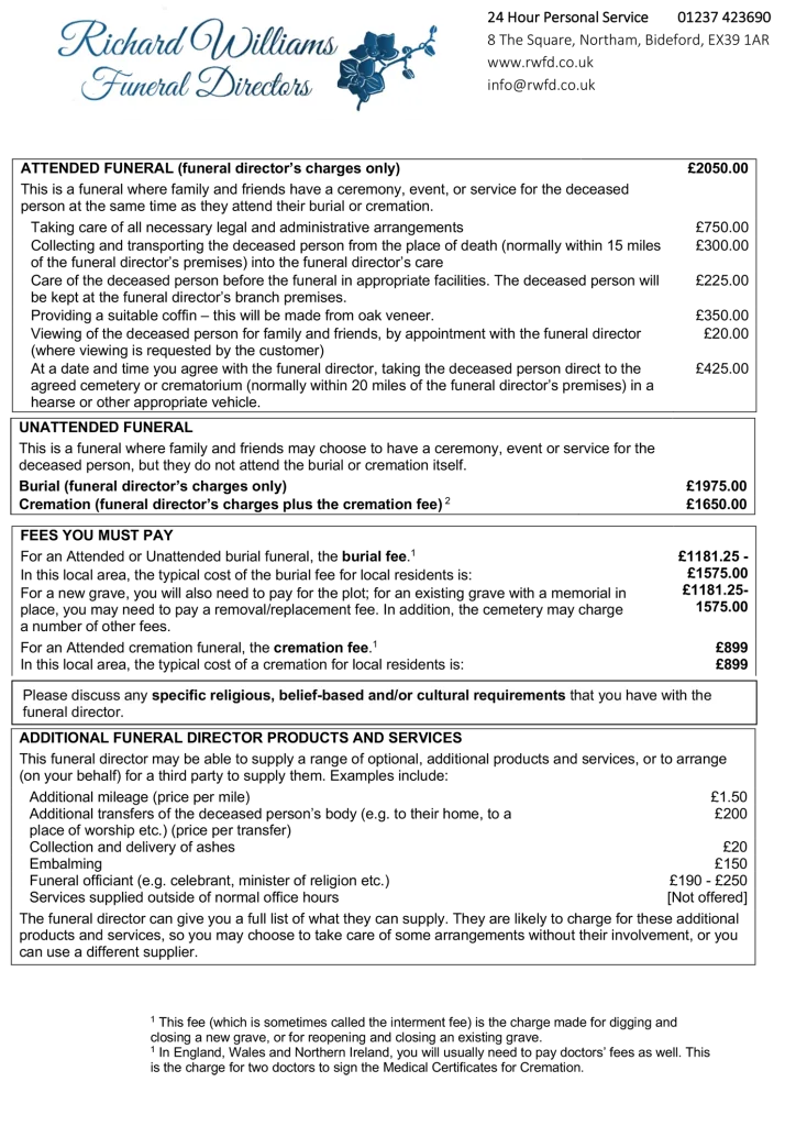 • Making all arrangements for Direct Burial, including liaising with the Local Council and Grave Diggers,